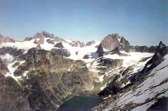Amusissa rises to top right, from Blue Lake (photo: courtesy of Simon Inger)