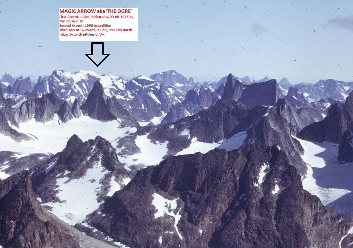 6 first ascents were made, and a second ascent of The Ogre, which they called Magic Arrow.